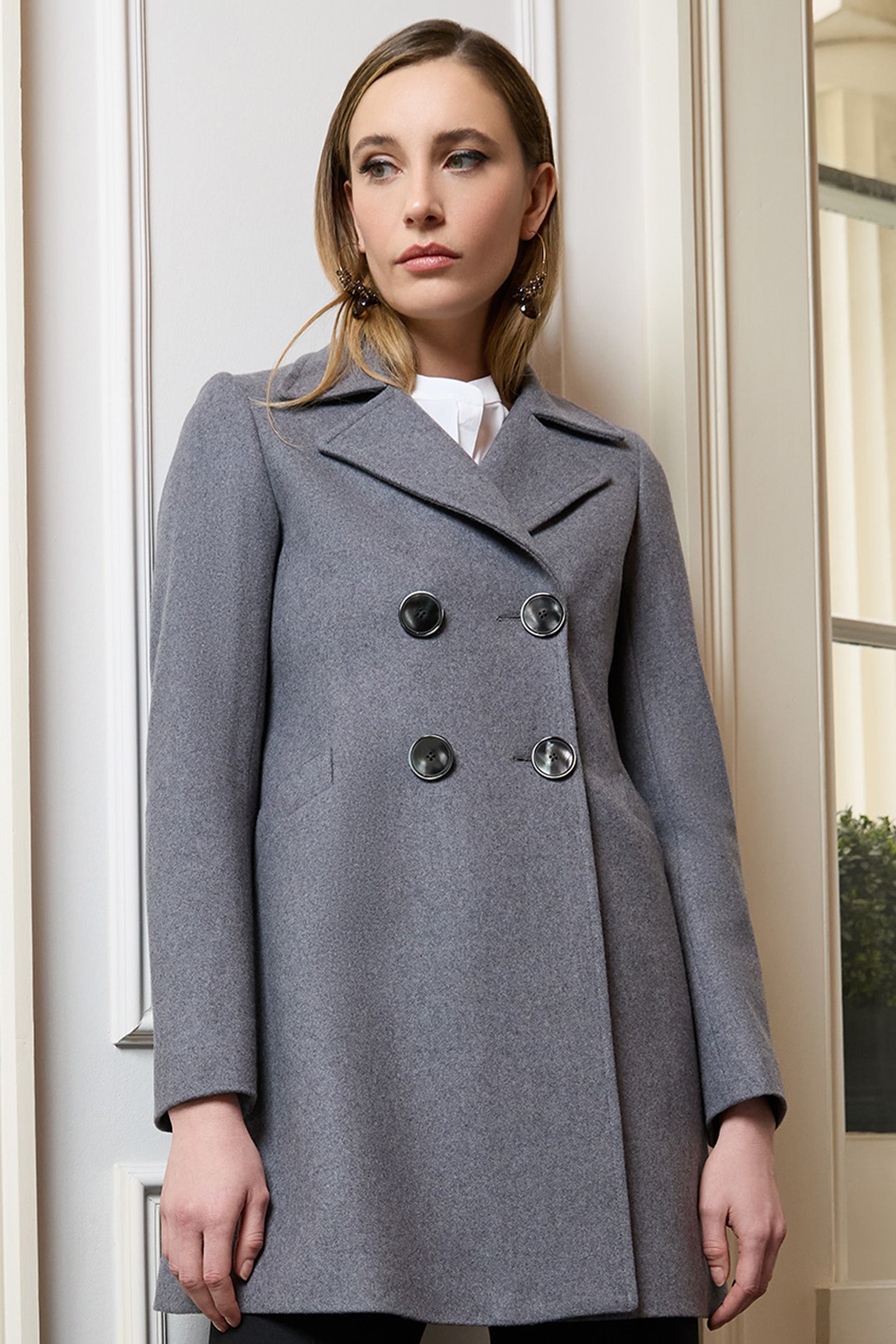 The Iconic Jane peacoat is back this season in grey. Made from the finest Italian wool, cashmere blend.