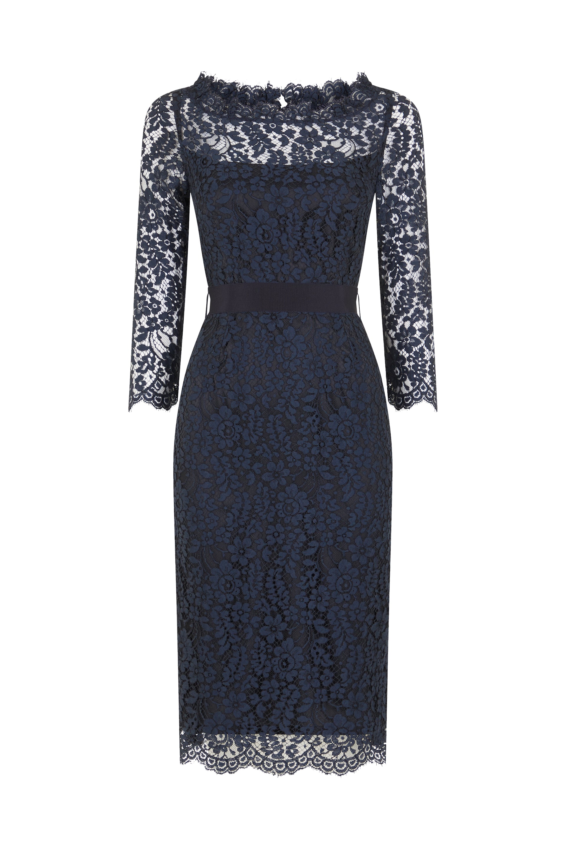 Soraya French Lace Pencil Dress - Midnight blue