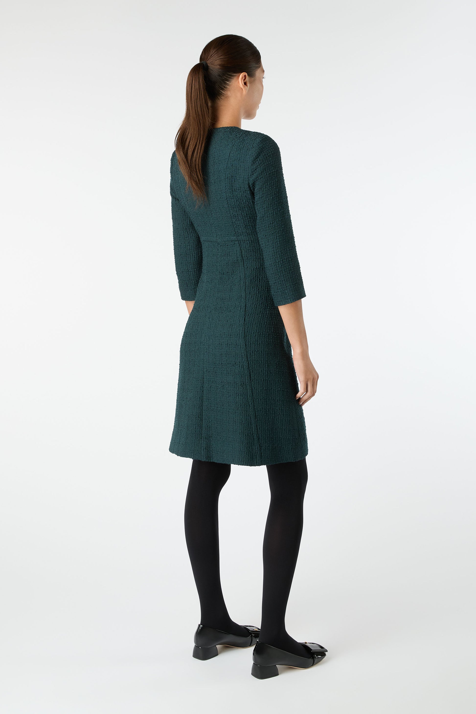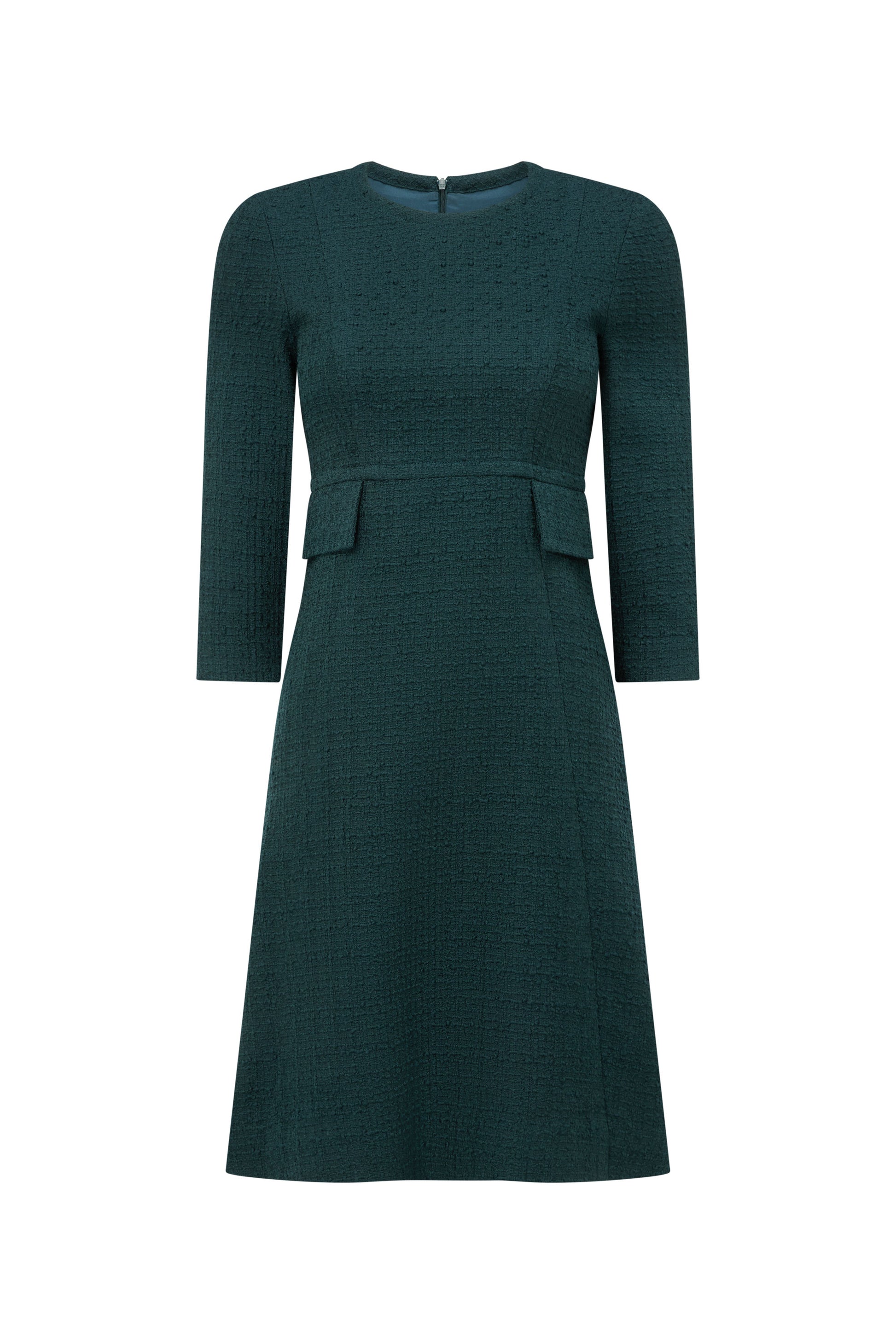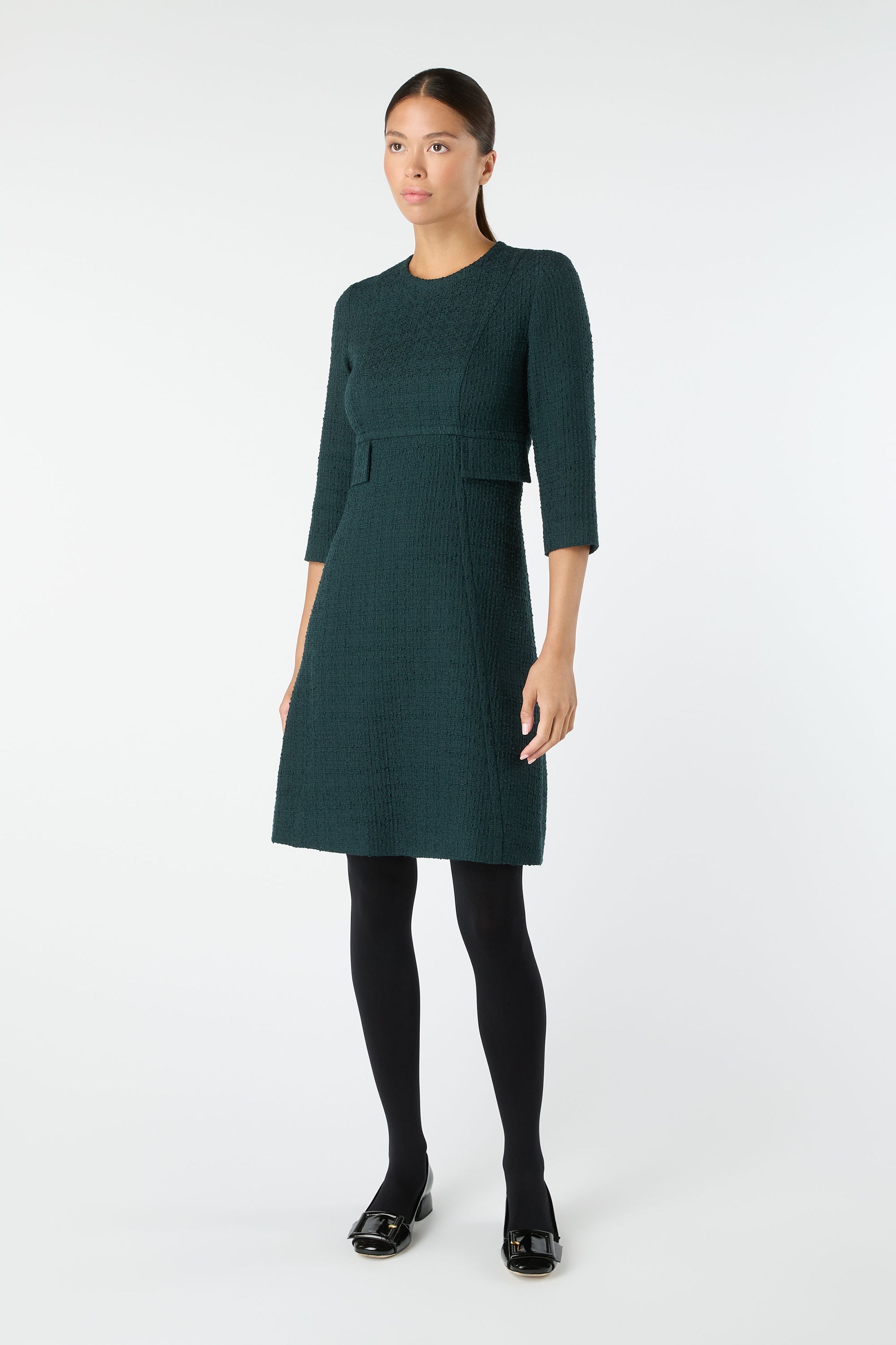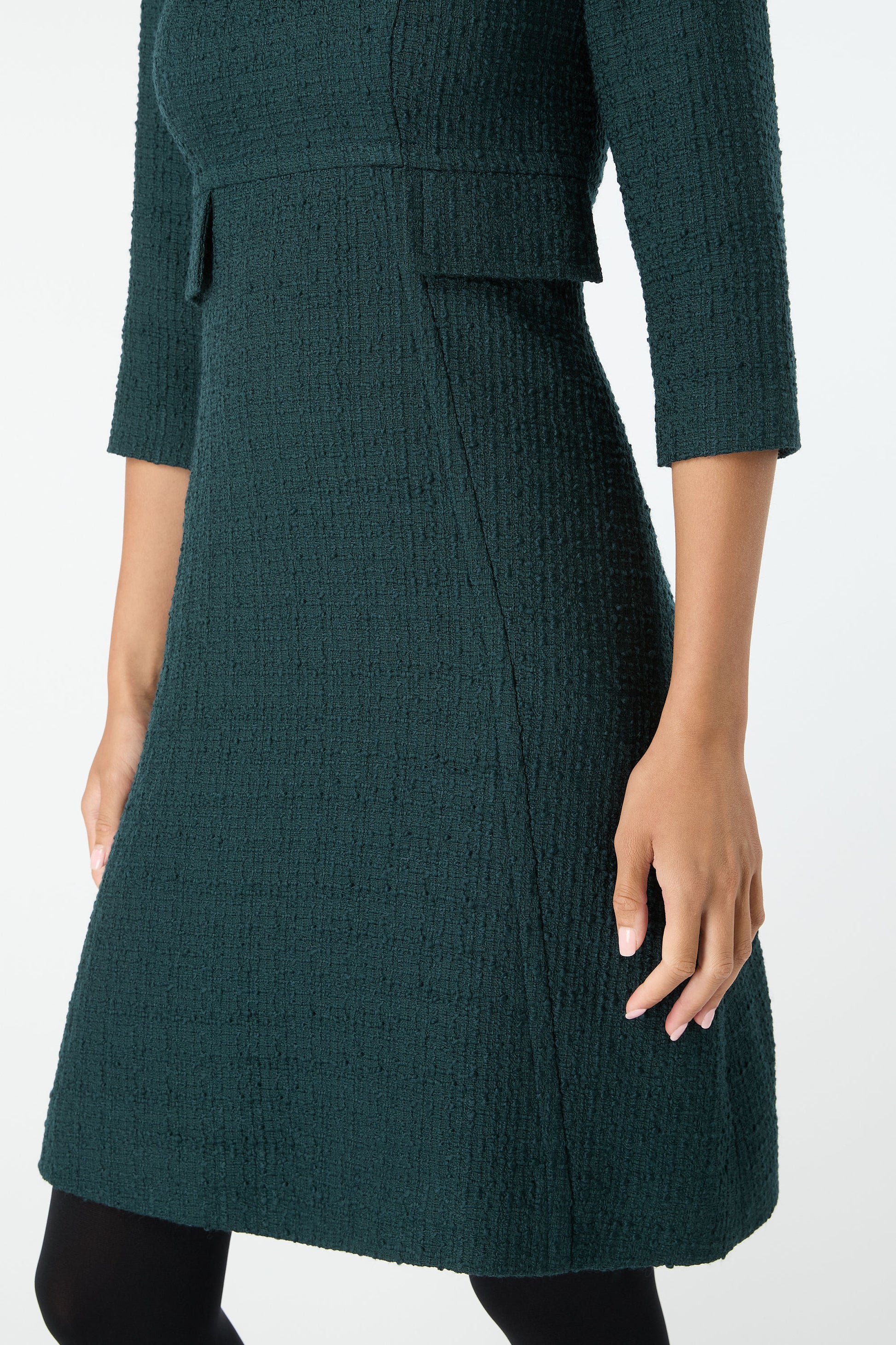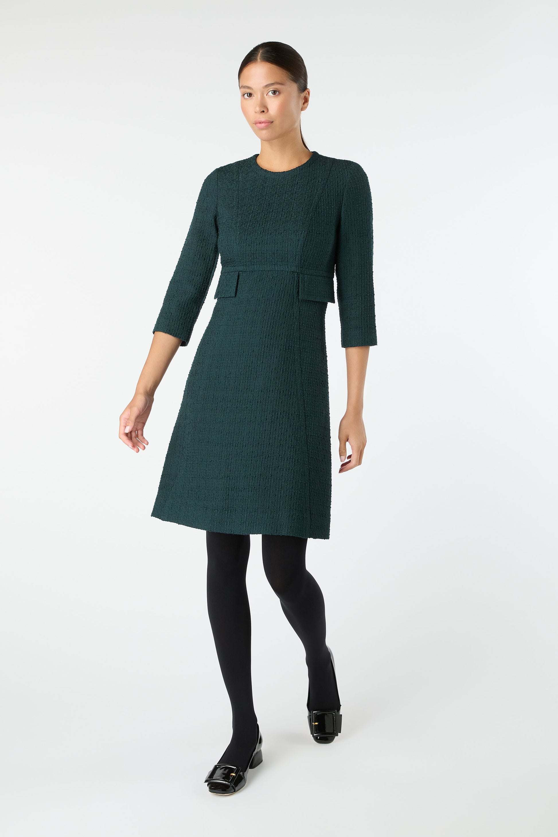 - A fabulous shift dress with 1960's vintage styling, made in London, England from luxury Italian tweed in dark green, sourced for it's softness as well as year-round appeal.
