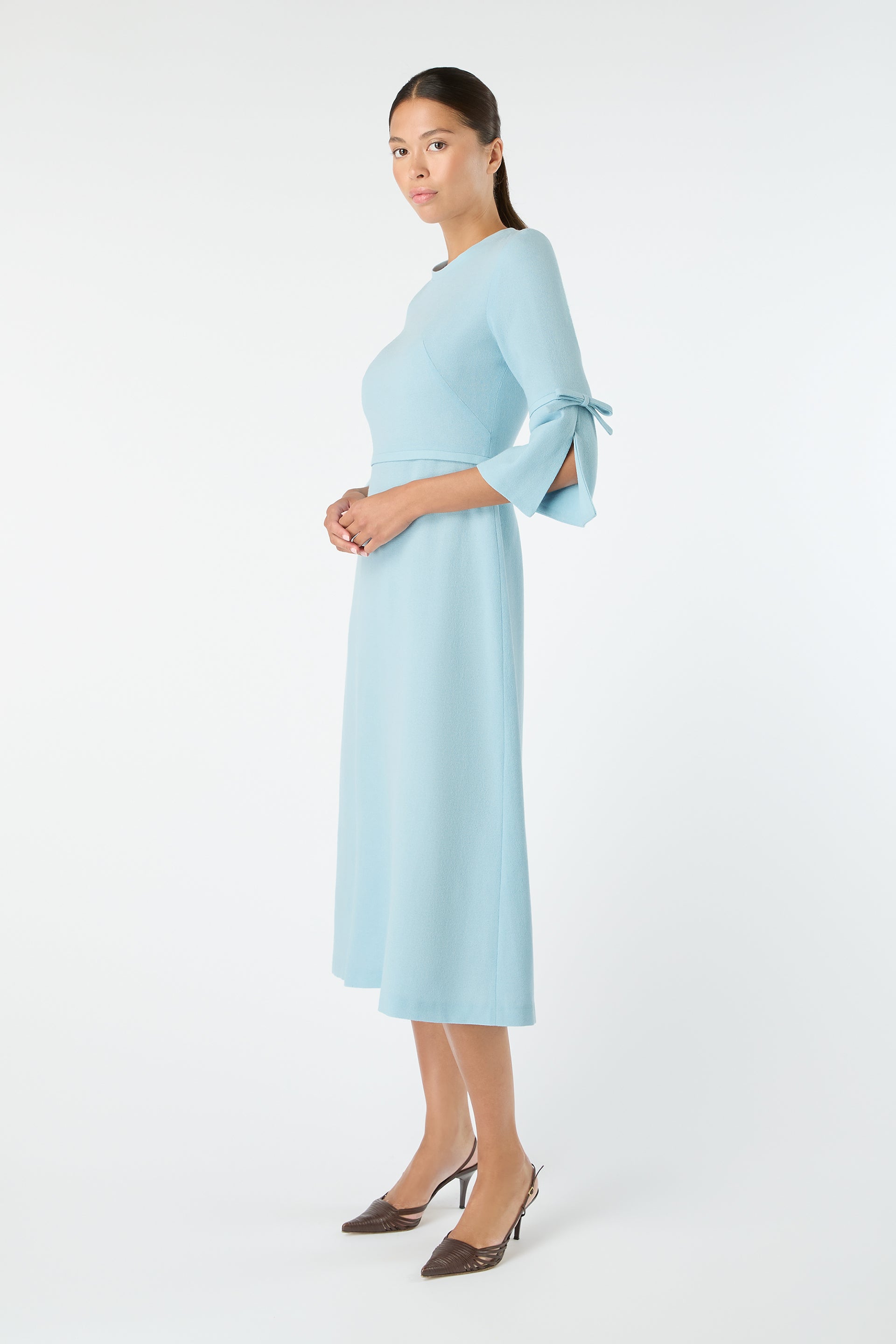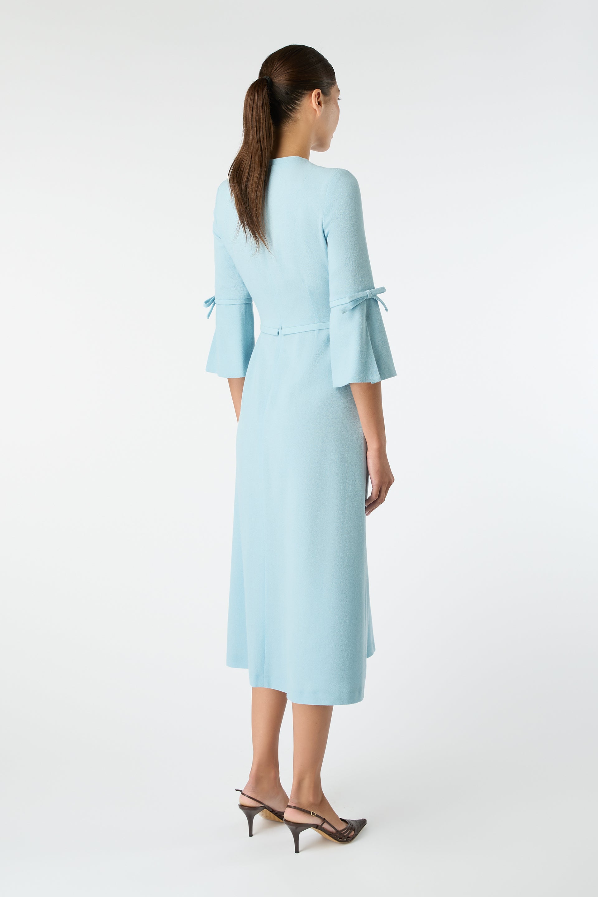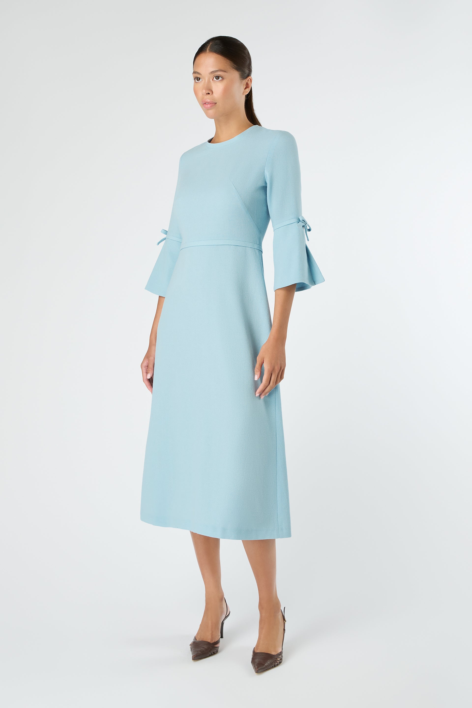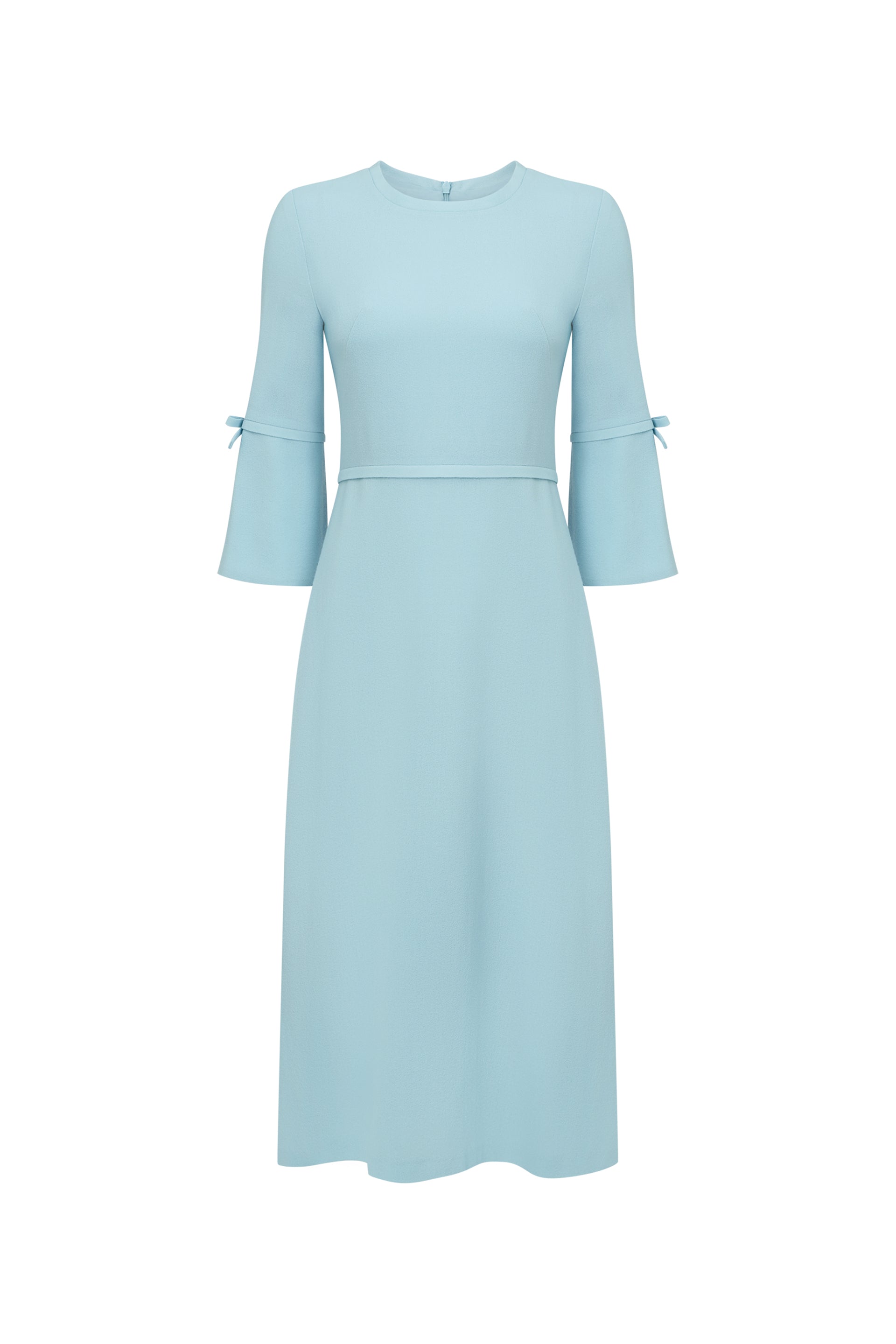 - A fabulously shaped fit-and-flare midi dress made from luxury Italian wool crepe in pale blue.