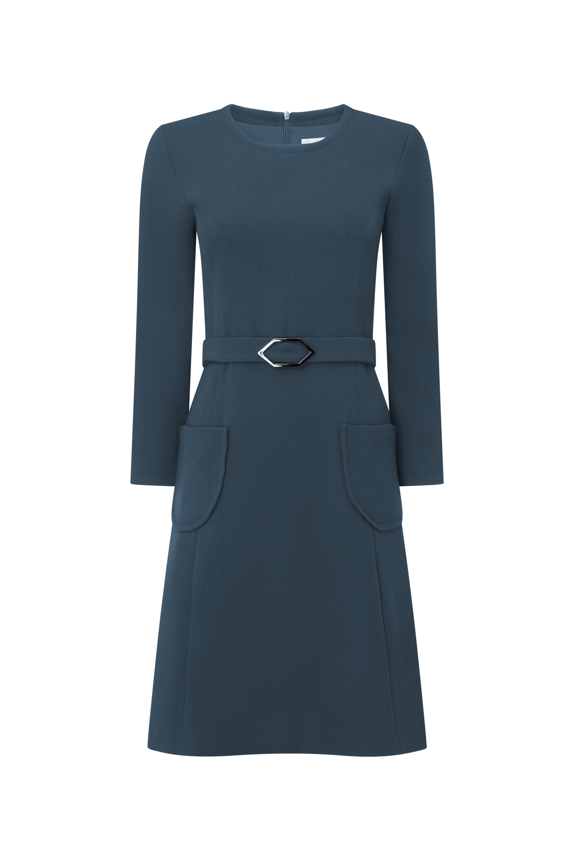 - A shift dress with vintage 1960's styling made from luxury Italian wool crepe in iron - a grey with a hint of green.